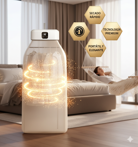 Con el Secador Portátil Premium, tu ropa estará seca y lista el mismo día.